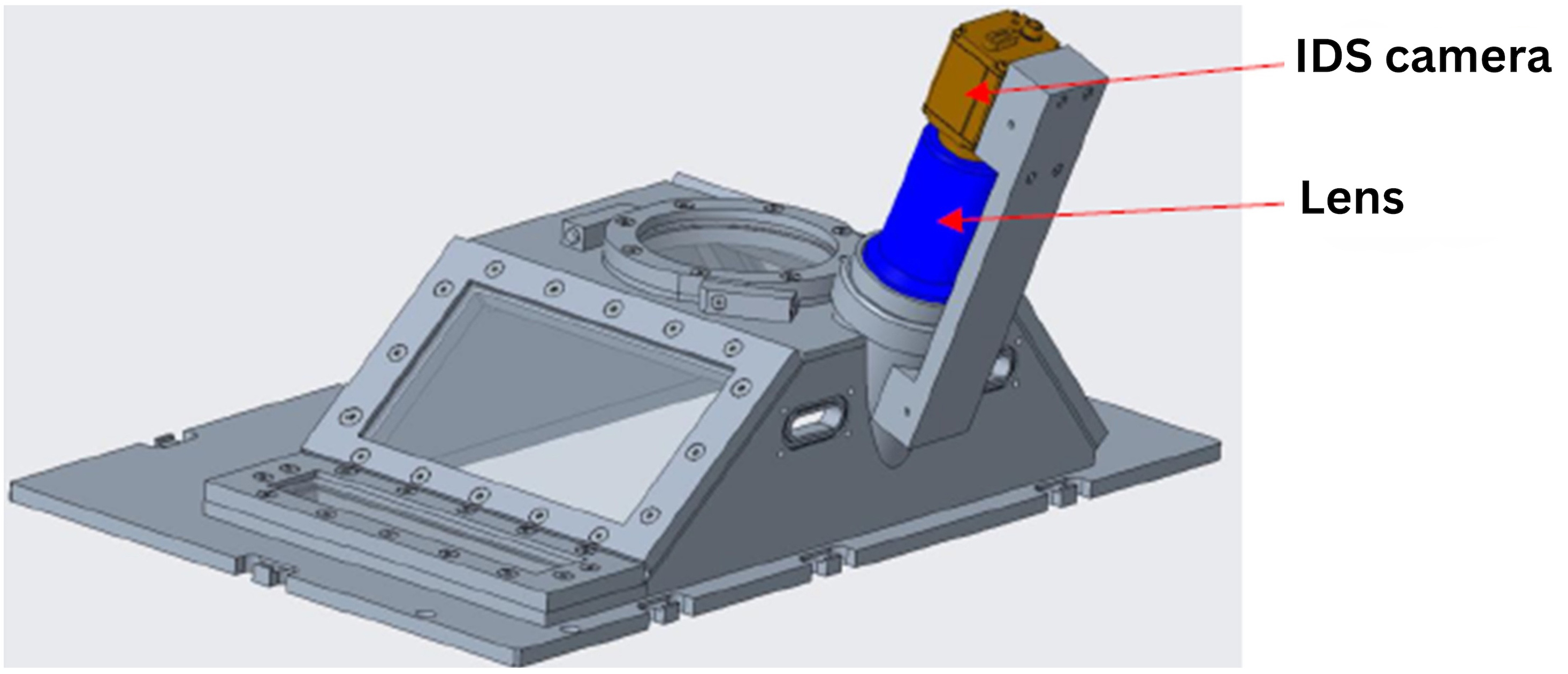 Design adjustments to the test setup for positioning the IDS camera U3-3990SE-M-GL Rev. 1.2 for static observation of the powder component geometry layers. Image: IDS