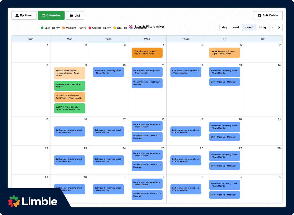 Visual maintenance calendar: Visualize all maintenance work in a calendar; drag-and-drop tasks to reschedule work.