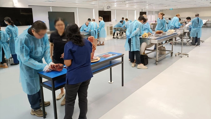 NUS students studying the human body using anatomical models. Image courtesy of NUS