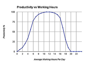The X-axis is the average number of hours per day spent working. Zero is of course zero, and 24 means that he would be literally working 24 hours every day, seven days a week without sleeping. The Y-axis is job productivity measured in the percentage of one’s possible potential. So 100 percent is the best one can possibly be.