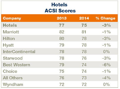 Just when we thought it was a safe bet that the economy was improving and consumer demand getting stronger, customer satisfaction with the travel sector takes a hit. Not a single hotel chain improves in guest satisfaction, and Best Western tumbles 6 percent. Among airlines, JetBlue, Southwest, and United fall, but Delta, American, and US Air improve.