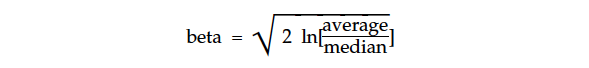 So we divide the average for the histogram by the median for the histogram, find the natural logarithm, multiply by 2, and take the square root to find an estimate of beta. For our data, this operation gives an estimate of beta of 0.511. So here we might use a lognormal (16, 0.5) model. This model is plotted on top of the histogram in Figure 3.