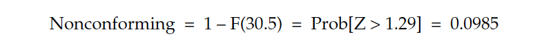 For example, using the upper watershed specification limit of 30.5, we might estimate that this process is likely to produce 9.85% nonconforming: