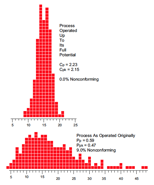 The only approach that examines the data for the homogeneity needed for the extrapolations to be reasonable is the process behavior chart approach. When the chart shows points outside the limits, the requisite homogeneity is missing, and prediction is just wishful thinking. Actions are required to get the process to operate predictably and, by highlighting the points where the process changes, the process behavior chart gives you clues as to what actions to take. The inevitable results of finding and controlling assignable causes of exceptional variation are increased quality, increased productivity, and improved competitive position.