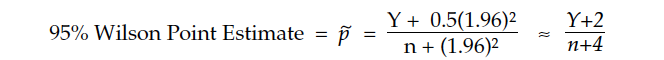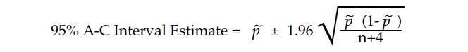 And the 95 Agresti-Coull interval estimate is computed as: