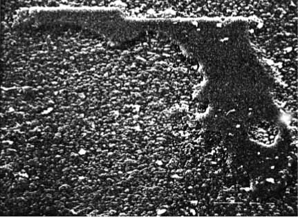 than 1,000 exhibiting companies will occupy 1.2 million net square feet of exhibit space at the McCormick Place complex in Chicago.   For more information, visit  www.imts.com.    Quality Blooper  About 20 years ago, as part of acceptance testing, a lot-sample of a bare semiconductor die was examined under an optical microscope. The inspection report indicated the presence of contamination or a defect on every die. The low-magnification photomicrographs showed a crescent-shaped area with a small internal dot. The entire lot was put on hold until the problem could be resolved. These dies were intended for use in a critical, time-sensitive Department of Defence application. To resolve the nature of this contamination/defect, one die was examined in a scanning electron microscope. The feature was viewed at 1,000×. The area was then better described as a handgun, with a wider part, the “grip,” and a narrow portion at roughly right-angles, the “barrel.”
