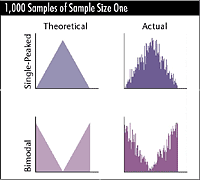 (i.e., one mode), and the other is bimodal (i.e., two modes).